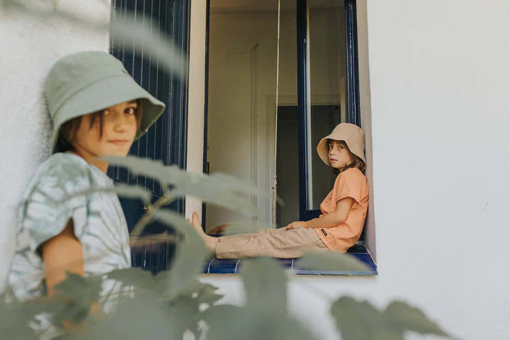 Soft pants in 100% cotton twill. The pants have a button and zipper closure. The pants have 2 side pockets and an elastic inside the waistband at the back to make the waist adjustable. The fit of the pants is more narrow at the bottom and looser at the top. The pants has a regular to loose fit.