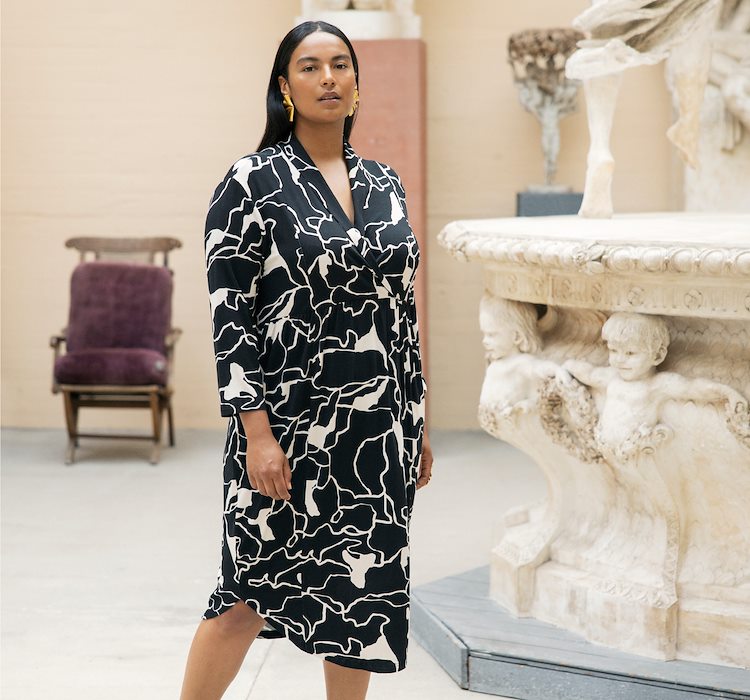 Jurk met V-hals in een grafische zwart/wit print.