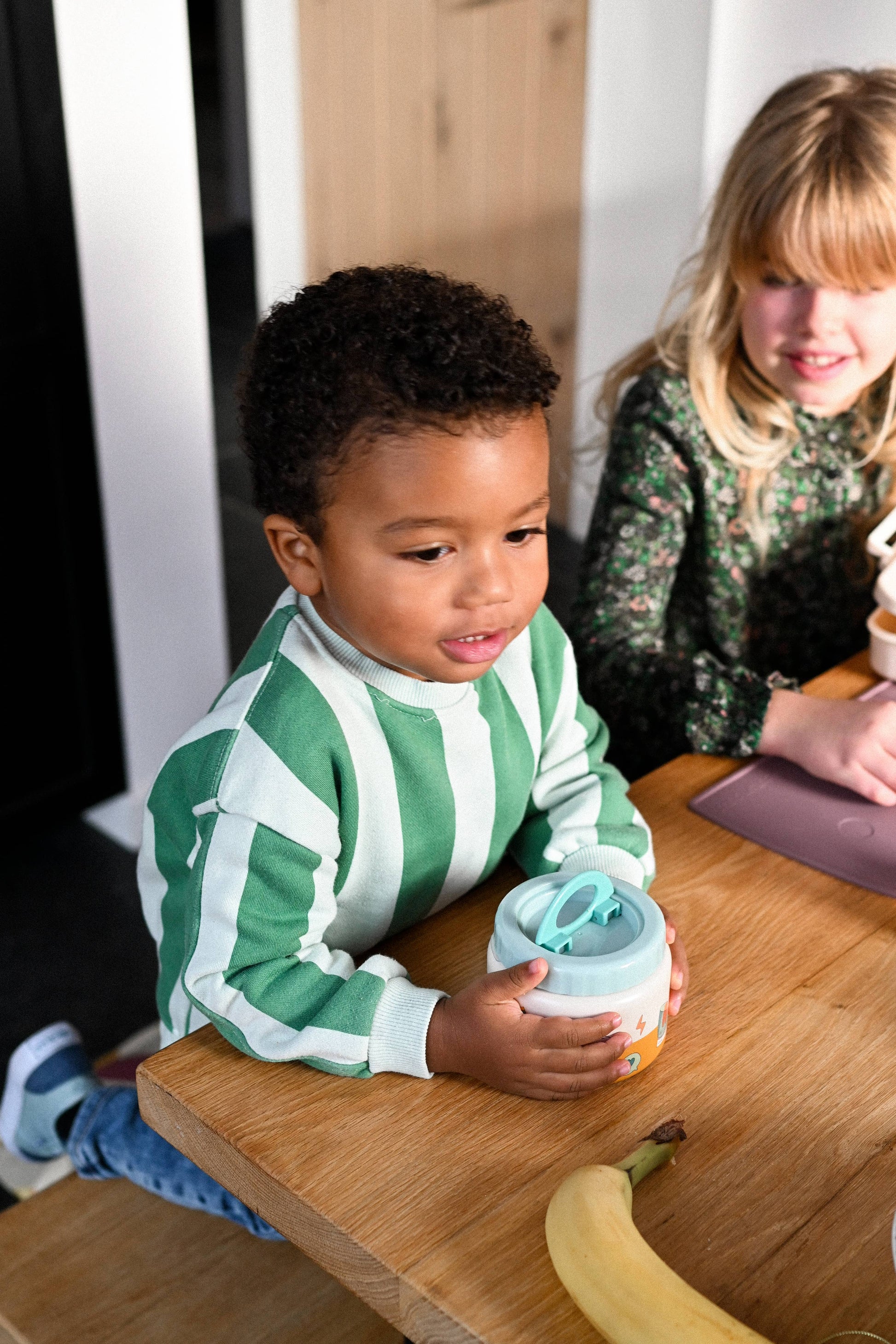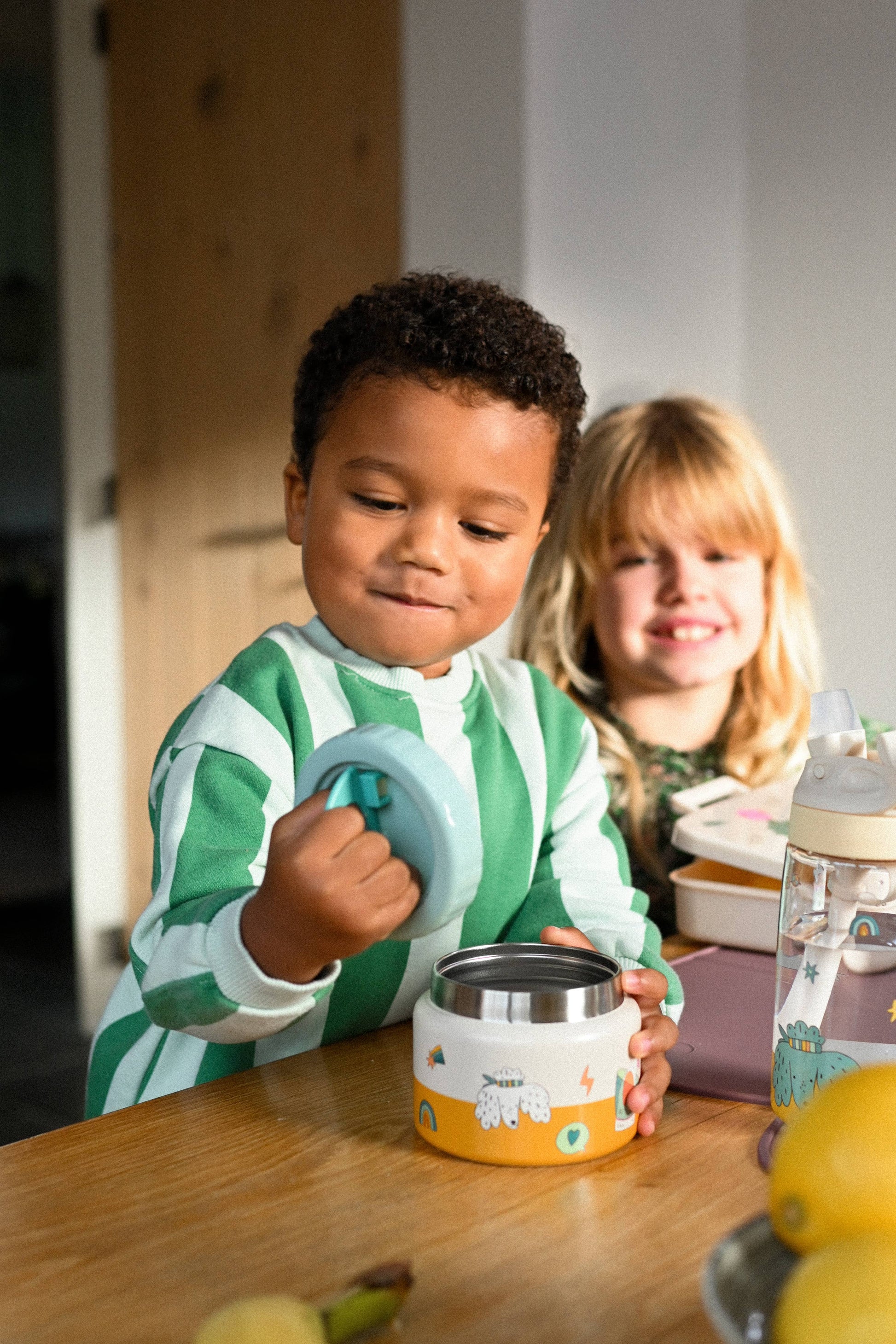 Introducing our new Kids' Thermo Food Jar – the perfect solution to keep your little one's meals and snacks at the ideal temperature on the go. With double-wall insulation, it keeps food warm for up to 6 hours and snacks cool for 12 hours. Crafted from top-notch materials - 304 stainless steel and polypropylene, this thermo ensures durability. The kid-friendly lid opens effortlessly upwards, making it easy for little hands to access their meals while preventing spills. We prioritize your child's safety, which is why our thermo is free from BPA, phthalates, and PVC.