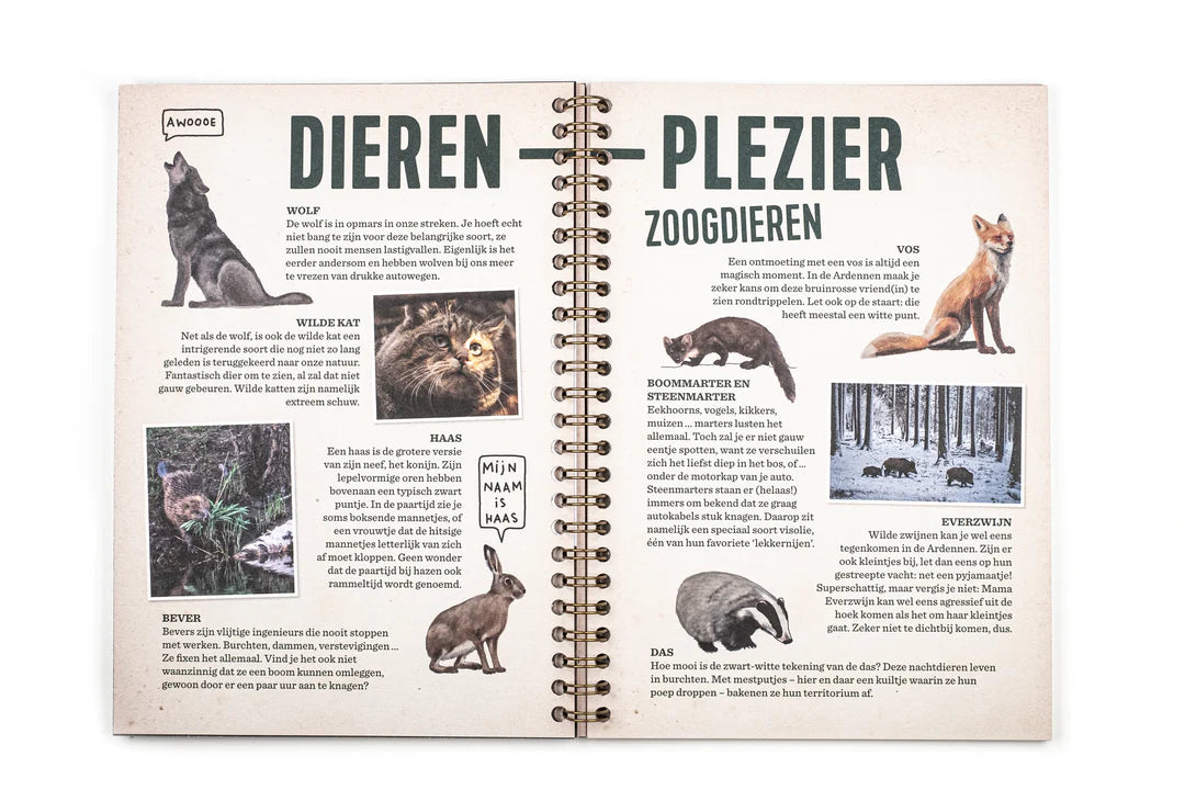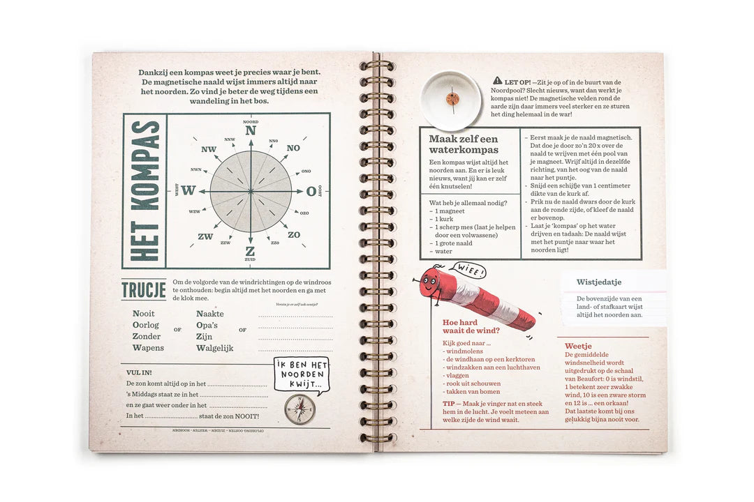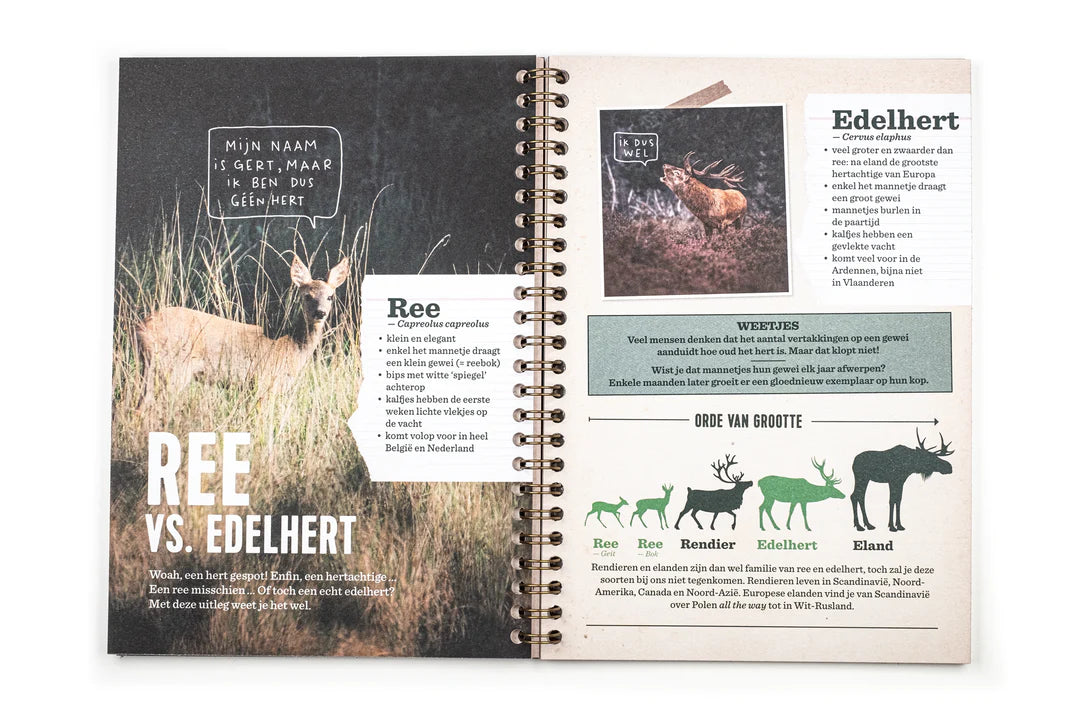 Wat al die dingen op een stafkaart eigenijk willen zeggen, het verschil tussen skiën en langlaufen en welke rare geluiden edelherten maken in de herfst. Natuurlijk mag je met je arendsogen ook op zoek naar de allercoolste bosvondsten — zo maak je je eigen vondstenmuseum.
